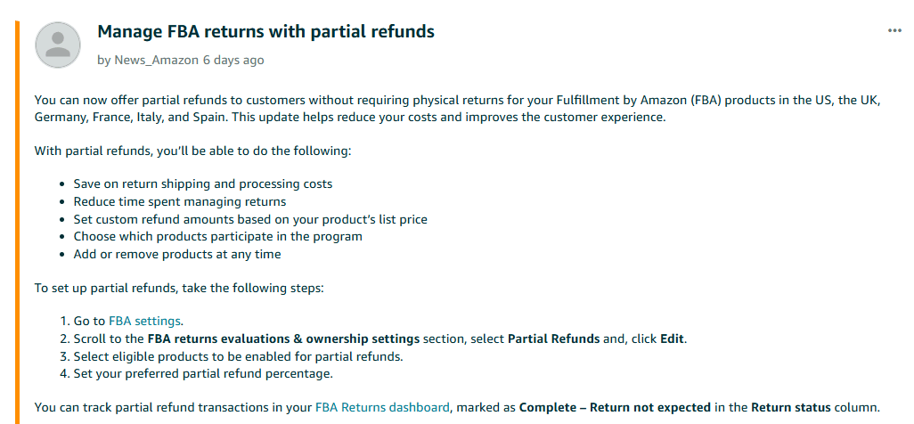 🎅 Holiday Sales Are on the Line: Sellers Are Losing Nearly Two Days a Week to Manual Tasks ChannelEngine’s new Marketplace Seller Trends Report 2025 shows that while sellers are expanding rapidly, with a third already active on seven or more marketplaces, including Amazon and Walmart, outdated manual processes are stalling growth. On average, 36 percent of the week is lost to tasks such as fixing listings and updating inventory, leaving sellers slower to respond to pricing and visibility challenges. With 91 percent calling automation business-critical, the findings underline a clear takeaway: sellers that streamline operations will be the ones positioned to win sales, protect margins, and scale successfully across channels this peak season and beyond. 🛠️ 6 Solutions Worth Checking Out 📦 YOUR SEARCH FOR A 3PL ENDS TODAY - Amazon will stop ALL in-house prep on January 1, 2026. Pattern will fill the void and help you run efficiently and keep your customers happy. Let them handle all the prep and compliance so you can focus on things that actually matter. Contact them today to level up your fulfillment game. 💡 AMAZON ONLY? HERE'S WHAT YOU'RE MISSING - Search demand on channels like Walmart, TikTok Shop, Temu, and Shein has exploded — TikTok Shop passed $16B in GMV last year, and Walmart added 100,000+ new sellers in 2025. The fastest-growing brands are already expanding beyond Amazon. With Multichannel Pro, your Amazon listings map directly into new marketplaces, orders route back to FBA, and inventory sync prevents overselling. Book time with our team. 🧌 BEEN HIT BY THE INFAMOUS AMAZON REVIEW TROLL? - One unfair review can tank your star rating and cost you thousands in lost sales. The worst part? These “review trolls” know exactly how to game Amazon’s system, and they don’t play fair. If you’ve been targeted, you don’t have to just sit back and watch your business suffer. Our team helps sellers fight back, protect their listings, and recover from the damage. Contact Danan at eCom Triage to see how your listings can be safeguarded. 🥇 OUTRANK COMPETITION BEFORE BLACK FRIDAY - Using Stack Influence, brands like Magic Spoon and Blueland have gotten to #1 page positioning on Amazon, beat out their competition, and boosted recurring revenue higher than $100K by simply gifting free products to influencers and driving external traffic. Learn more HERE. 🌊 GET YOUR BRAND IN FRONT OF MILLIONS - Resound Marketing has cracked the code on driving external traffic to your listings from top publishers like Good Morning America, the New York Times, Oprah, and more. Their campaigns have resulted in over 1 BILLION media impressions for brands. Spots in their next PR mailer to major media close at the end of March - act fast! Sign up here. 🤩 OFF-AMAZON TRAFFIC THAT CONVERTS - Ranking on Amazon with PPC alone is a losing strategy. Perch+ gives you access to Top 10 lists, deal sites, and more. To snag 20% off your first month, just fill out this quick form! (*everything above is a sponsored ad, get yours here!) 🚀 This Week's Amazon Hack: To Multipack or Not to Multipack? That Is the Question You probably caught my Amazon update in a recent newsletter. I have some bad news. There is more to the story. This actually got my attention because some readers reached out asking about how the FBA fee will work. I have bad news for you. Yes, physical multipacks are out, but so are the lower fees. I'm now realizing that Amazon made this change because it's going to be yet another money printer for them. Basically, they are offering convenience for a fee. Napkin math: Physical Option: In this situation, you ship in a pre-packaged 2-pack and pay $10/unit in FBA fees. Virtual Option: You now pay close to $15 in FBA fees, absolutely crushing your profit margin. Do you see what Amazon did? It's not cool. And I apologize for not mentioning this before! I actually made the WRONG assumption that Amazon would keep the FBA fees the same. Oh, how wrong I was! My vote is to send in physical multipack bundles and only do this for items that you have a high level of confidence in. The virtual route is great for testing, but that's about it. If you source from a factory, this is ridiculously easy and extremely efficient, so it should always win when doing a side-by-side comparison. So, I'm glad you read this issue today because it might save your butt this year! 🔥 Hot Amazon Seller News: Say Hello to Partial Refunds Without Returns! So, I have some thoughts on this update. At face value, it sounds pretty epic, but like anything Amazon-related, you have to be very careful. Let me explain... The real value here is the time you will save not having to deal with annoying returns, especially during Q4. Let me ask you something. How many dang times has a customer reached out to you asking about something minor? Historically, you could only offer a return or refund them and tell them to keep it. Now you can offer a partial refund and tell them to keep the item. This is actually from the DTC playbook. Lots of elite brands do this, including Wayfair. Returns cost a ton of money. This is a great tool to combat those costs and just make your customer super happy. Some concerns... So, it's not all fairies and unicorns with this update. Expect abuse and loss of customer data. Getting your returns back allows you to dig deeper into trends and gives you the chance to resolve them with your factory. So there's a bit of a trade-off here. Then there's the Reddit factor. Do you think that people are going to be saints and never lie? Are you crazy? Of course they won't! Expect this update to flood the forums and become a "shopping hack" for customers. Basically, you will need to watch these emails like a hawk and sniff out bad actors. A great task for one of your employees. Now, this obviously will not be something you will want to use on $100+ products. It's all about balance when it comes to your catalog. U